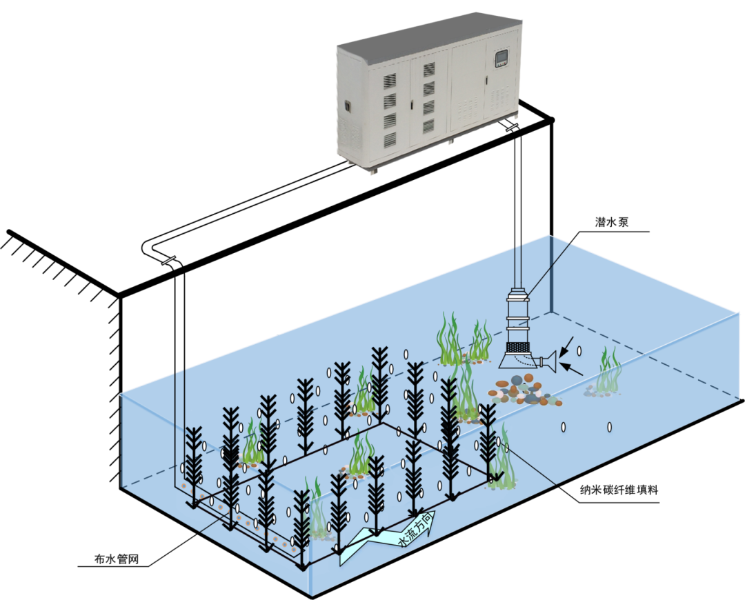 独有的声波效应可吸引鱼群参与生态链构建,形成"吸附-分解-转化"的动态净化闭环。此外,其构造简单,占地面积小,基建投资省,床体结构固耐寒具有施工工期短和运行维护成本低廉的优势。该产品在河南等地的水环境提升治理项目中取得显著成效。